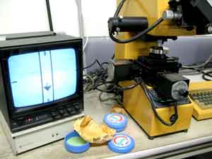 硬度計:ダイヤモンド圧子で熱処理後の針の硬さを計ります。